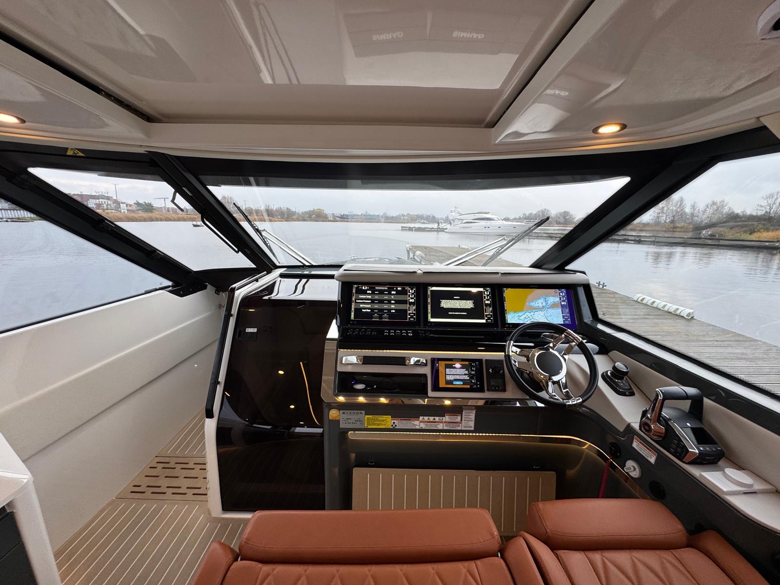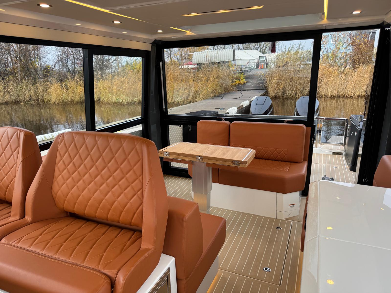 Featuring an innovative main deck design, the GTC, like its sibling, the GTO, maximizes its internal living space with a wheelhouse that extends to the full beam of the boat. Yet, the GTC takes luxury a step further with its vast, insulated glazing, creating a luminous, cozy interior that defies the elements. This layout connects directly to the side terraces, adding practicality and crafting a serene, private island experience while at rest.