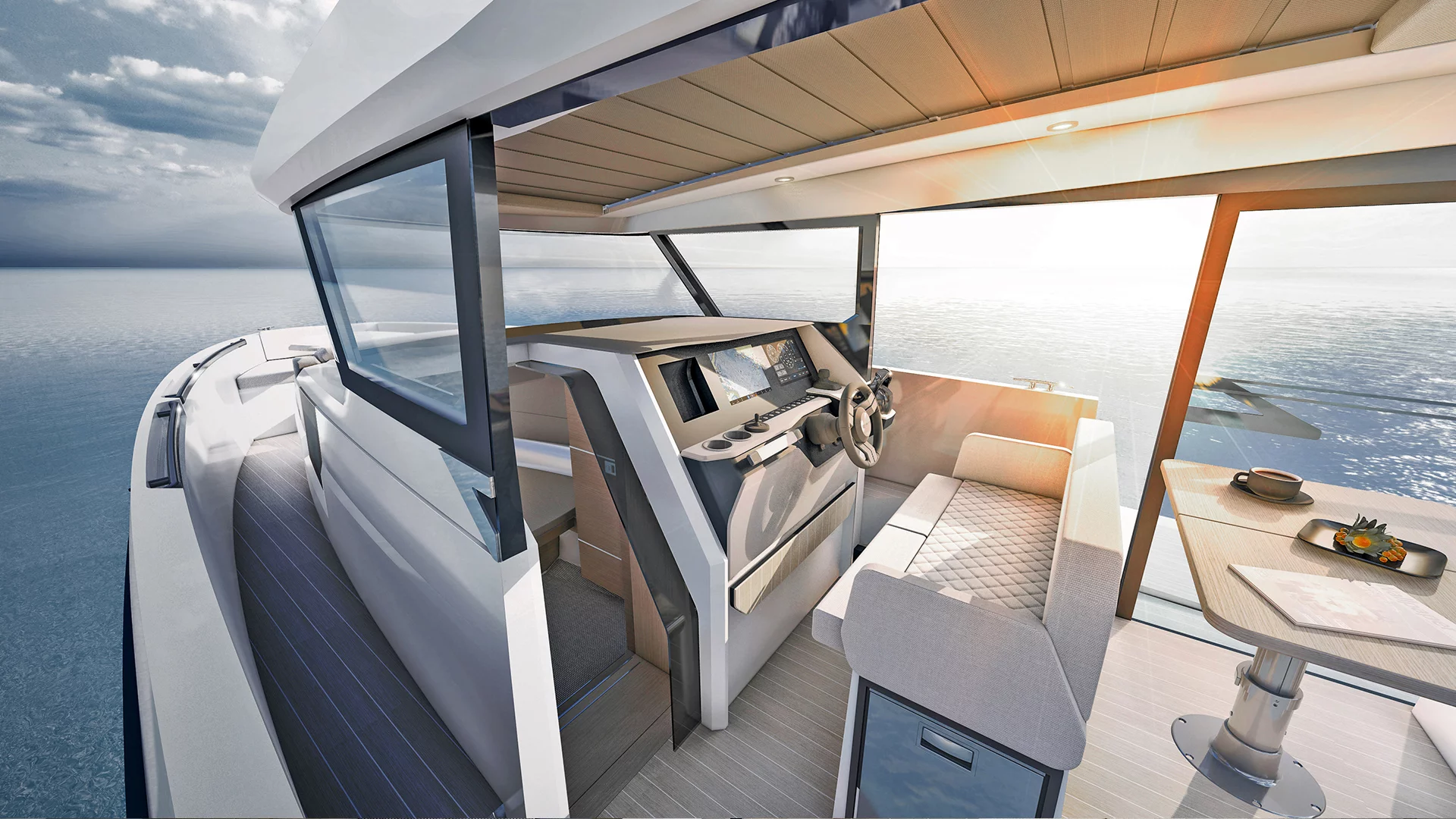 Saxdor 340 GTWA nosaka jaunus dizaina un funkcionalitātes standartus laivošanai dažādos laikapstākļos. Šis modelis nemanāmi apvieno dabas baudījumu ar izcilu komfortu, piedāvājot drošu, laikapstākļiem necaurlaidīgu telpu, kas nodrošina jums aizsardzību jebkuros apstākļos. Aprīkots ar vieglu, izturīgu konstrukciju un divpakāpju V veida korpusu, tas apvieno izcilas laivošanas īpašības ar efektīvu degvielas patēriņu, nodrošinot vienmērīgu, augstas veiktspējas braukšanas pieredzi.